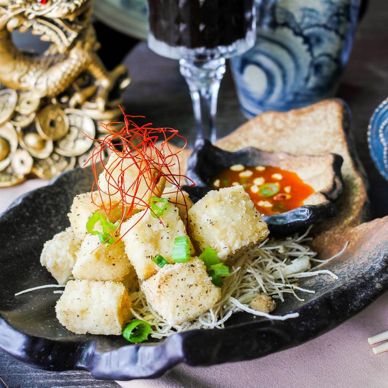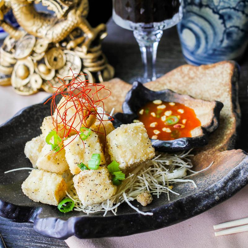 Crispy tofu, sauteed w/ house ginger soy, onions, bells lemongrass, Jasmine rice