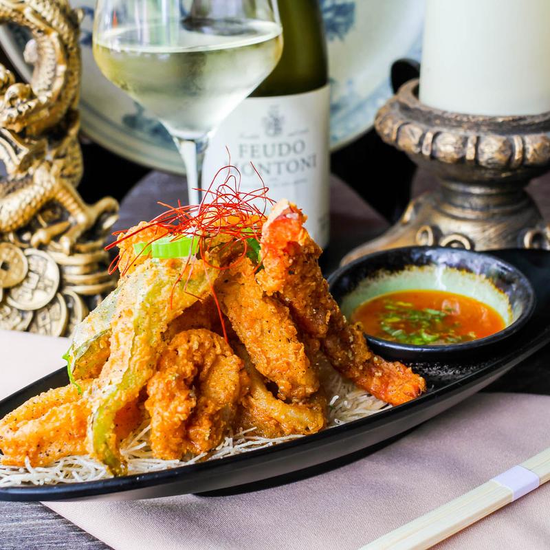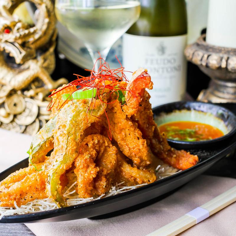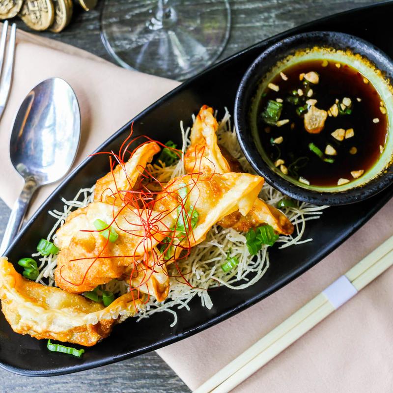 Crispy chicken & veggies dumpling, sweet chili soy dipping