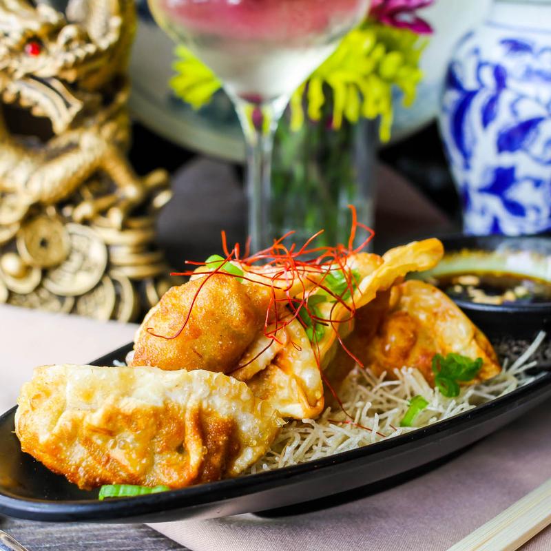 Crispy chicken & veggies dumpling, sweet chili soy dipping